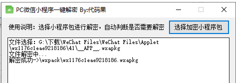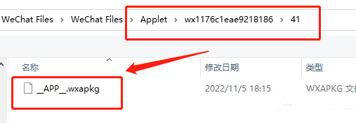 不过里面的是加密过的文件:__APP__.wxapkg就需要用到我们前面的解密软件。