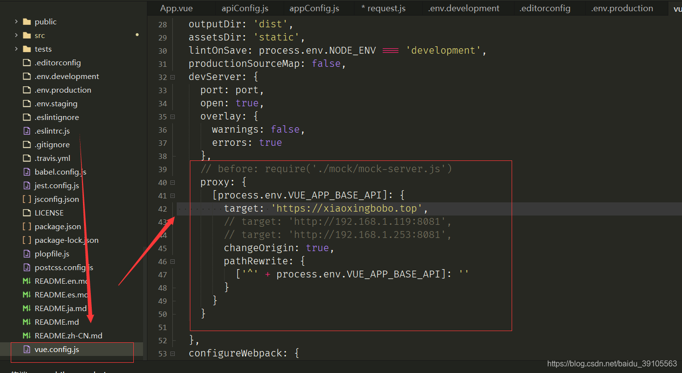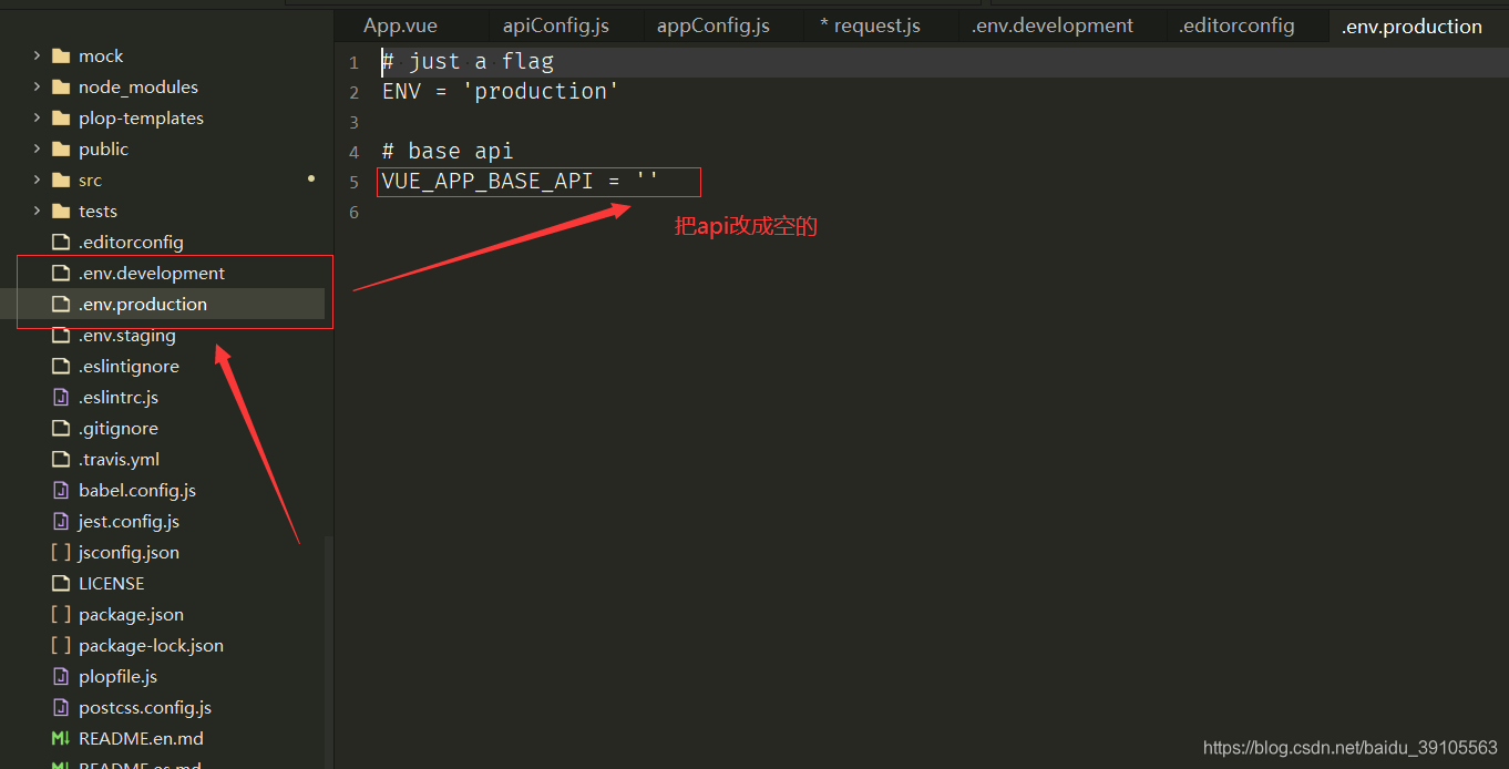 4、改.env.production和.env.development里面的api都为空,图只展示.env.production