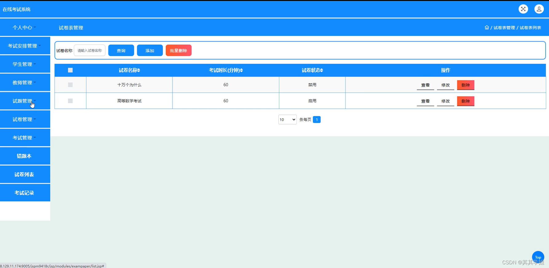 8.后台路径地址:localhost:8080/项目名称/jsp/index.jsp