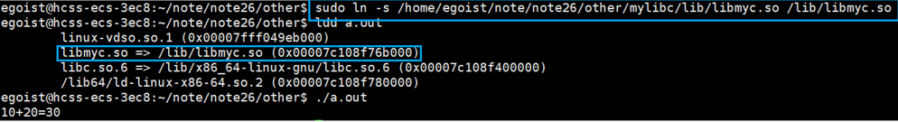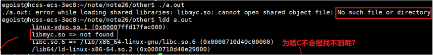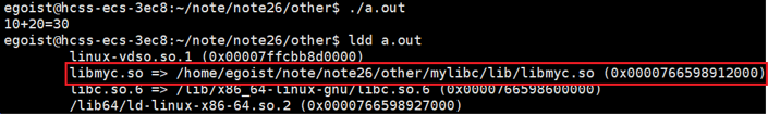 导入环境变量:export LD_LIBRARY_PATH=$LD_LIBRARY_PATH: /home/egoist/note/note26/other/mylibc/ lib/
