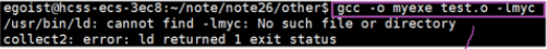 但是我们依旧可以看到指定库名称后还是不能形成可执行程序,报错显示该没有找到该库路径.