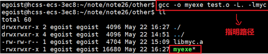 最佳实践:gcc -o myexe 库 -L+指明路径 -l+库名称