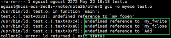 此时李四调用了方法后,用gcc命令链接形成myexe可执行程序时却出现了问题: