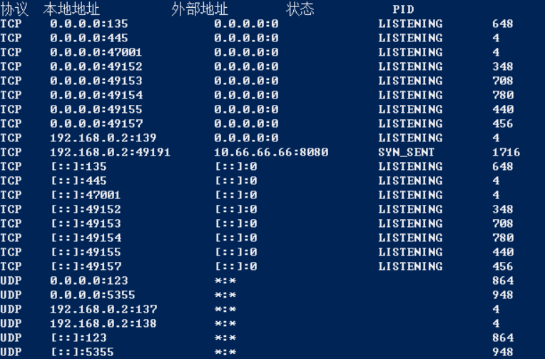 于是,我决定查看他的端口号是否于外网连接。使用命令:netstat -ano