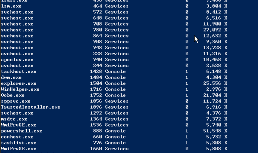 因为题目中说到的是进程,所以我们使用命令:tasklist ,但是我并不能一眼发现后门的进程是哪个。