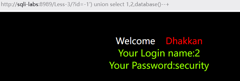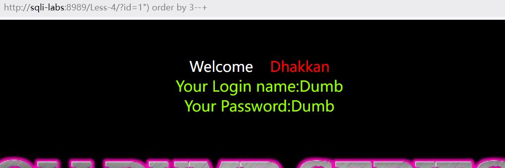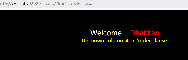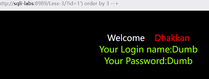 输入列数1,2,3有回显,而4没有回显,因而判断列数为3,尝试布尔盲注