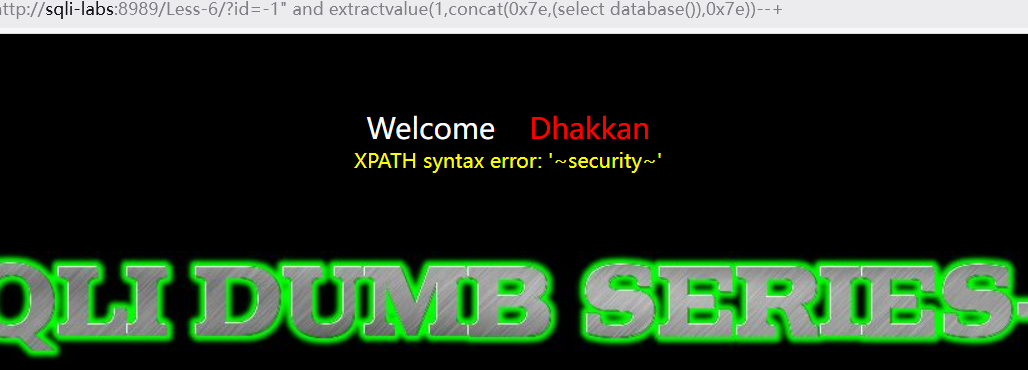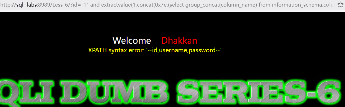 根据获取列数的过程中可以得到这道题跟less5一样使用报错注入即可