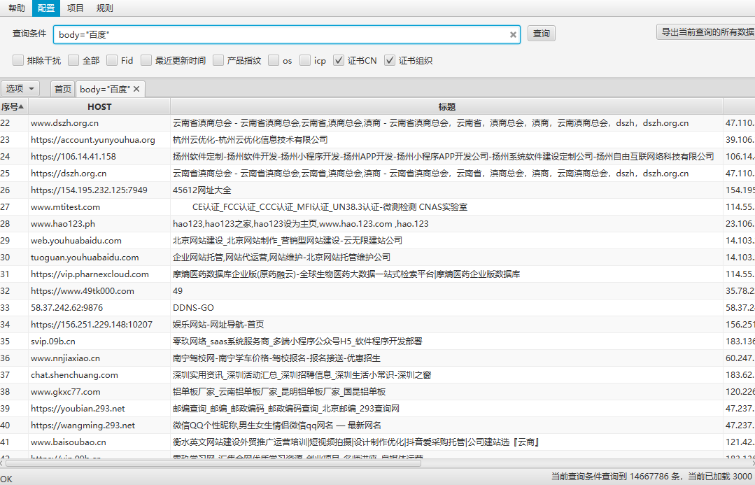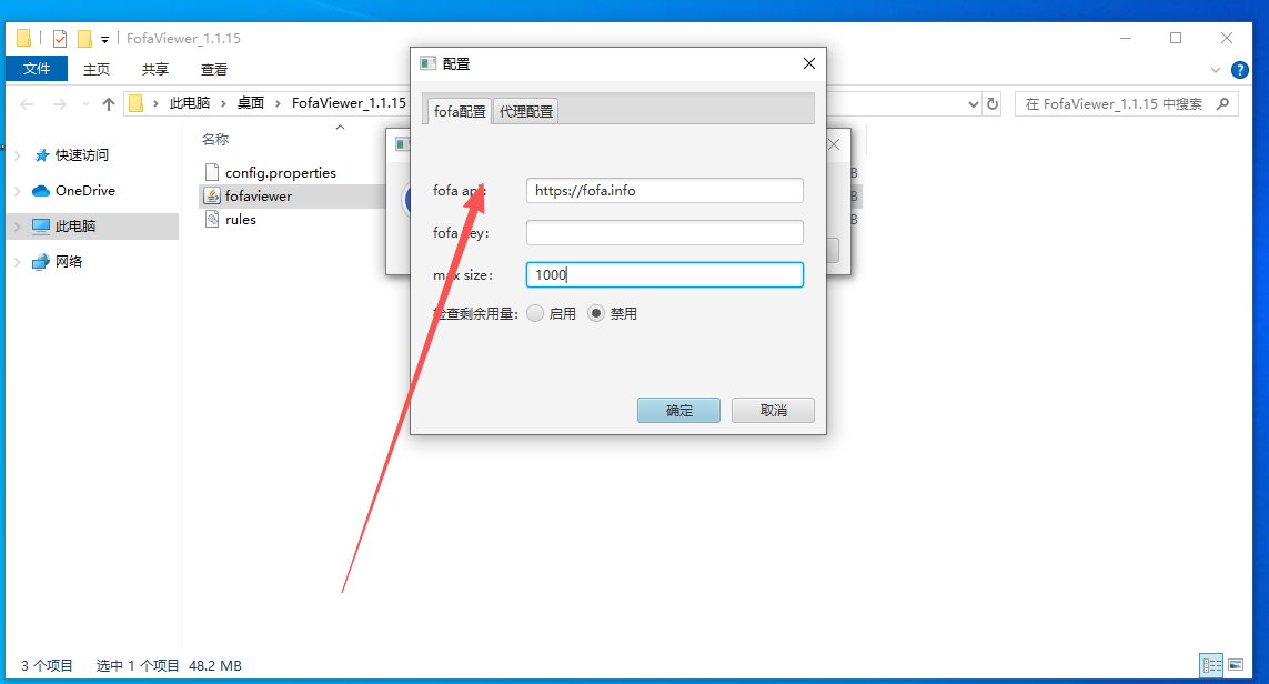 下载完成之后解压,我们双击fofaviewer就可以使用,在配置这里我们导入key,数据出现的最大值可以进行调整