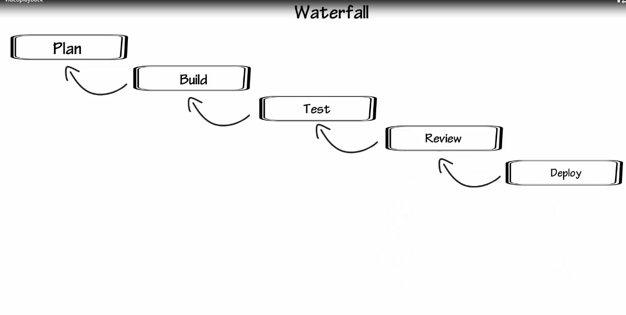 我们大部分人都学过瀑布开发模型,它是以文档为驱动的,为什么呢?因为在瀑布的整个开发过程中,要写大量的文档,把需求文档写出来后,开发员都是根据文档进行开发的,一切以文档为依据,开发完成后将进行测试,评审,最终部署到正式环境。瀑布流模式每一步往往依赖前一环节的结果,一旦某个环节搁置了,有可能会影响整个软件开发进度。瀑布流模型如下所示: