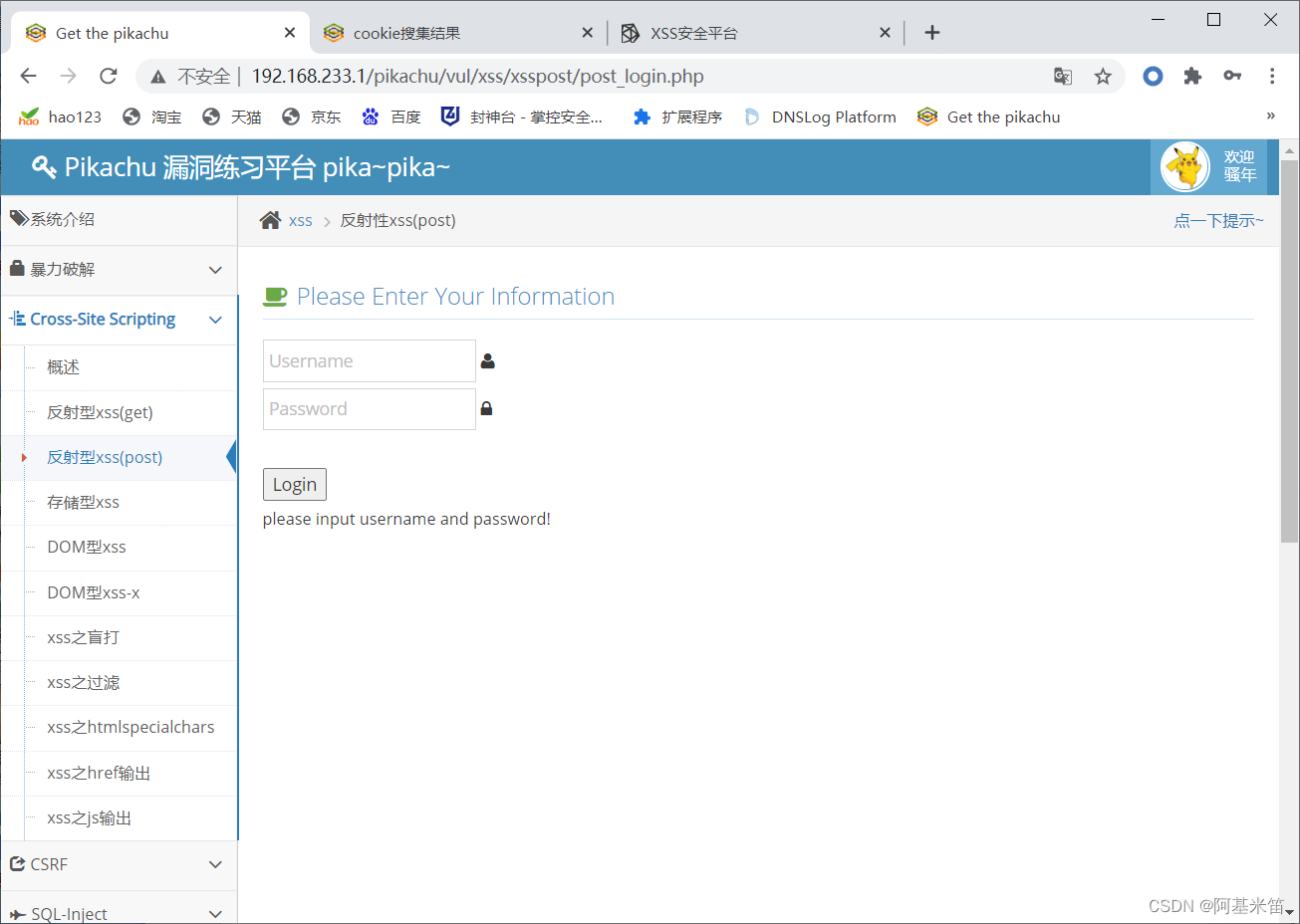 这里面的登录我们可以使用暴力破解,但是我们本节是要利用xss来获取cookie,利用cookie登录后台的,所以我们先登录一下