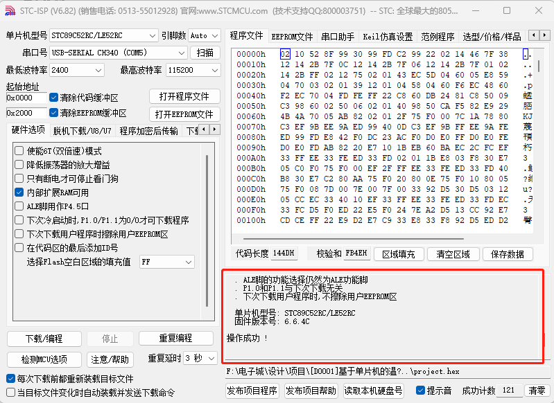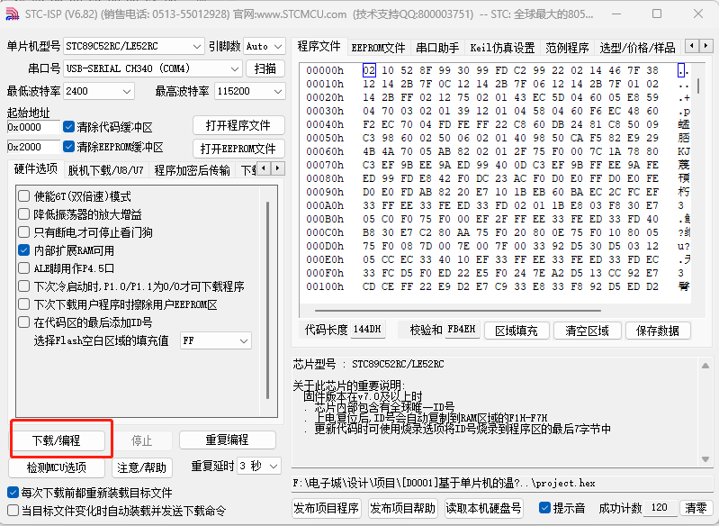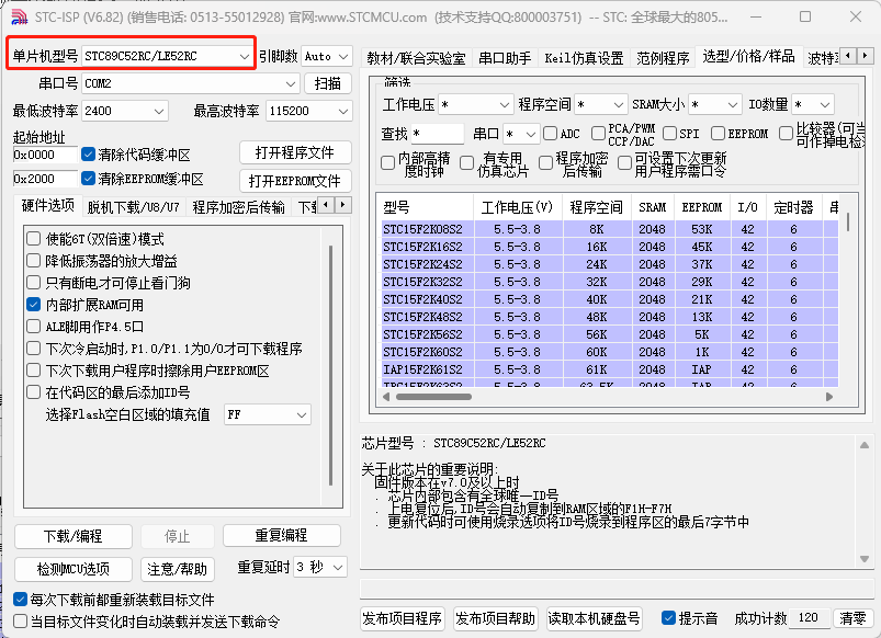 再然后我们就需要将编译后的二进制文件通过各种各样方式写入芯片里面,下面我们就以STC的单片机如何烧录展开叙述。