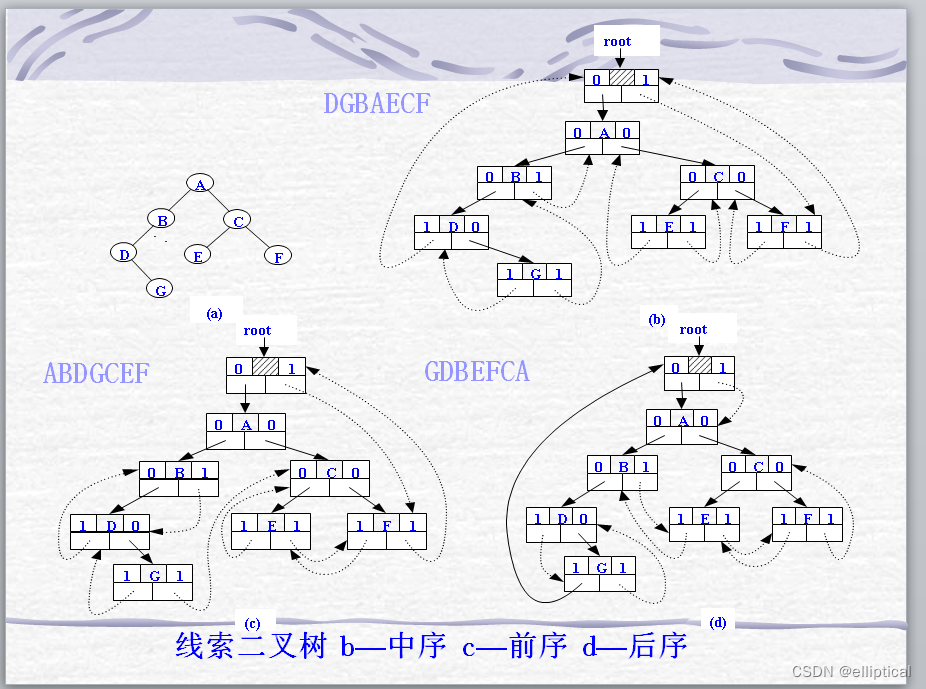 线索二叉树是另一种分步遍历二叉树的方法。它既可以从前向后分步遍历二叉树,又可以从后向前分步遍历二叉树。