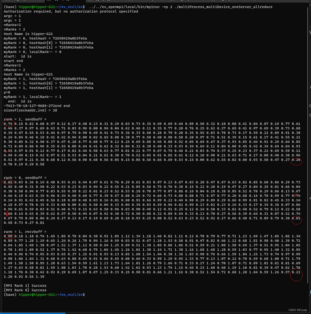 allreduce ncclSum的数学效果,每个进程的recvbuff都满足: