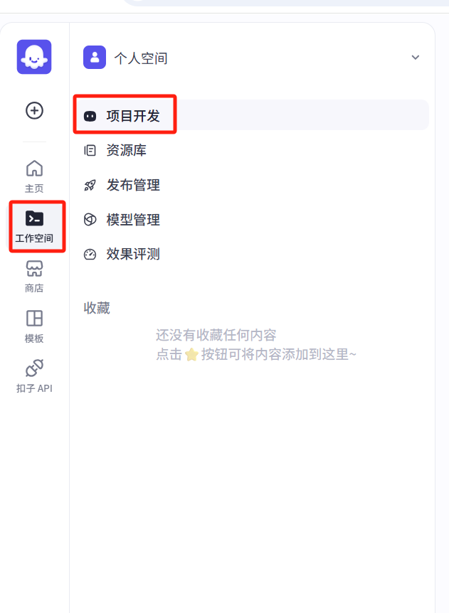 点击左侧导航栏中“工作空间”的 “项目开发”。