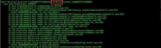 从内容上来看,像是解压后的JAR包信息。读取JAR包信息应该是在项目启动的时候,那么在项目启动之后使用strace作用就不是很大了。所以应该在项目启动的时候使用strace,而不是启动完成之后。