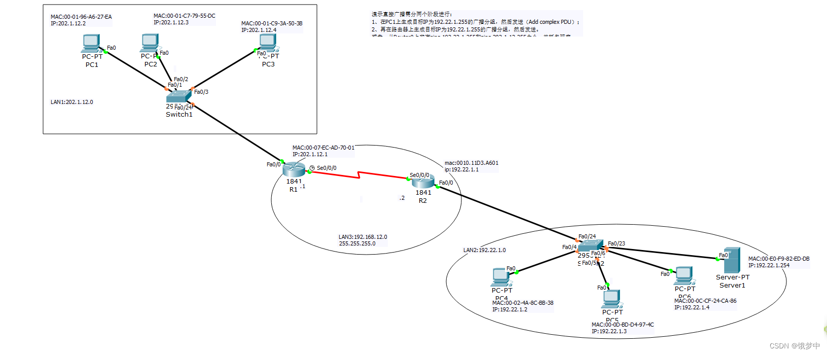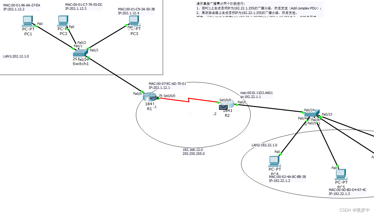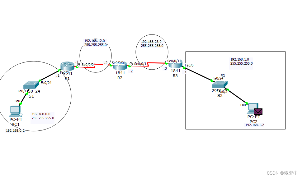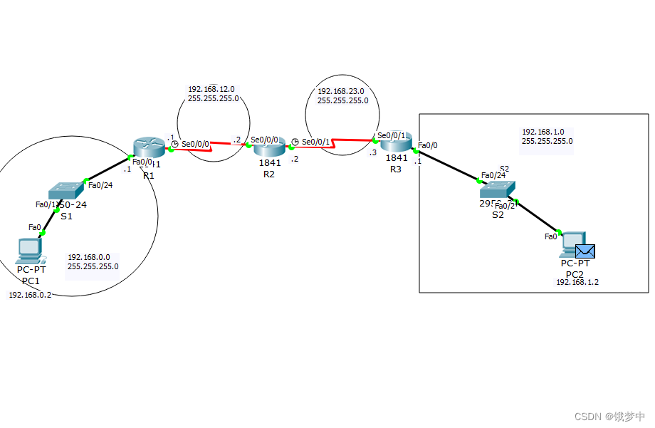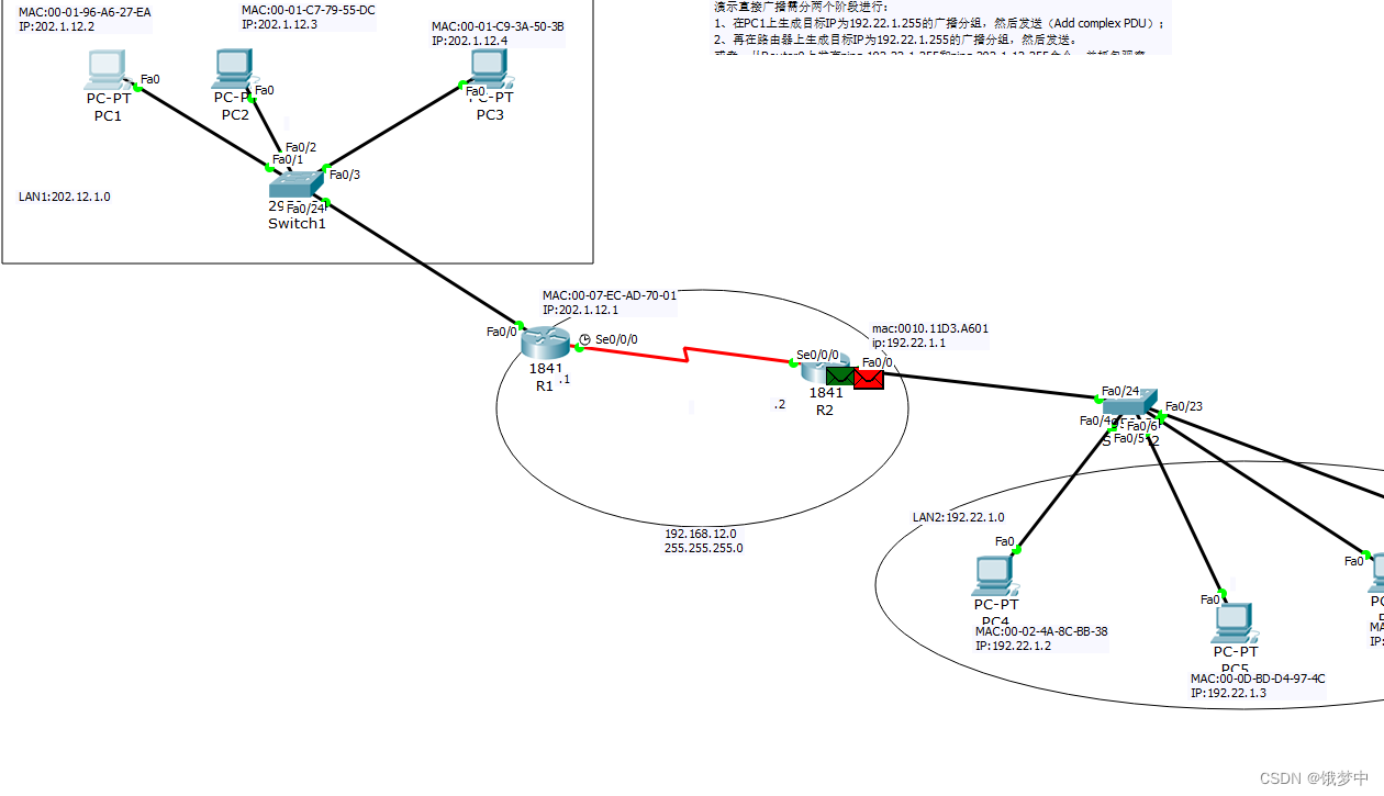 而下图能从局域网1发到局域网2,但是从路由器R2发回不到R3:
