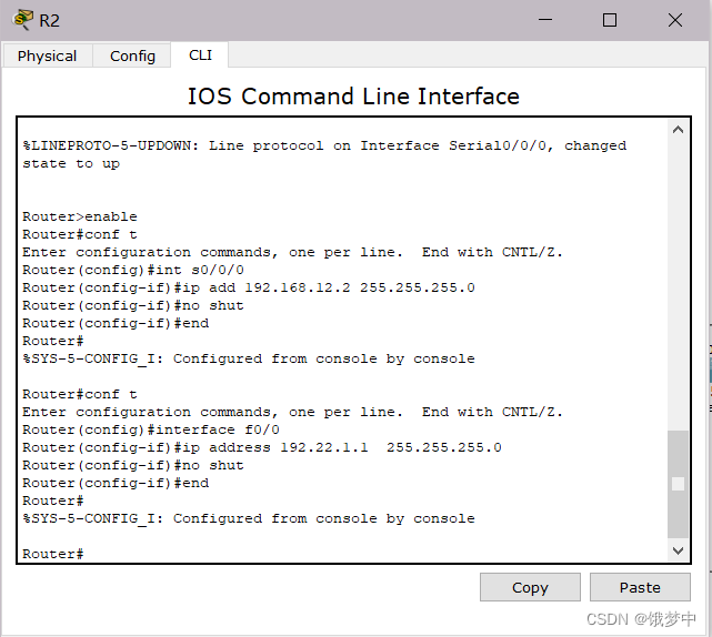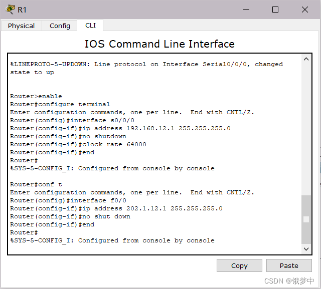 1.由于是长距离通信路由器之间的链接不能用以太接口,要用串行接口。