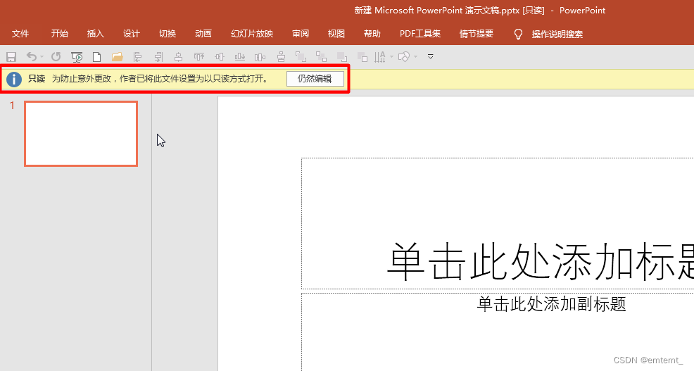 选中【始终以只读方式打开】,那么下次打开演示文稿是只读,不能编辑(除非启用编辑)