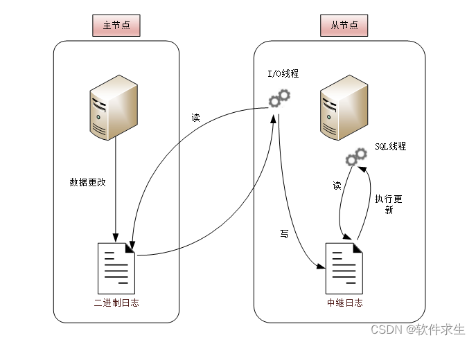 - 执行日志事件:从服务器的SQL线程会将中继日志中的“事件”执行到自己的数据库中,保持与主数据库的一致性。