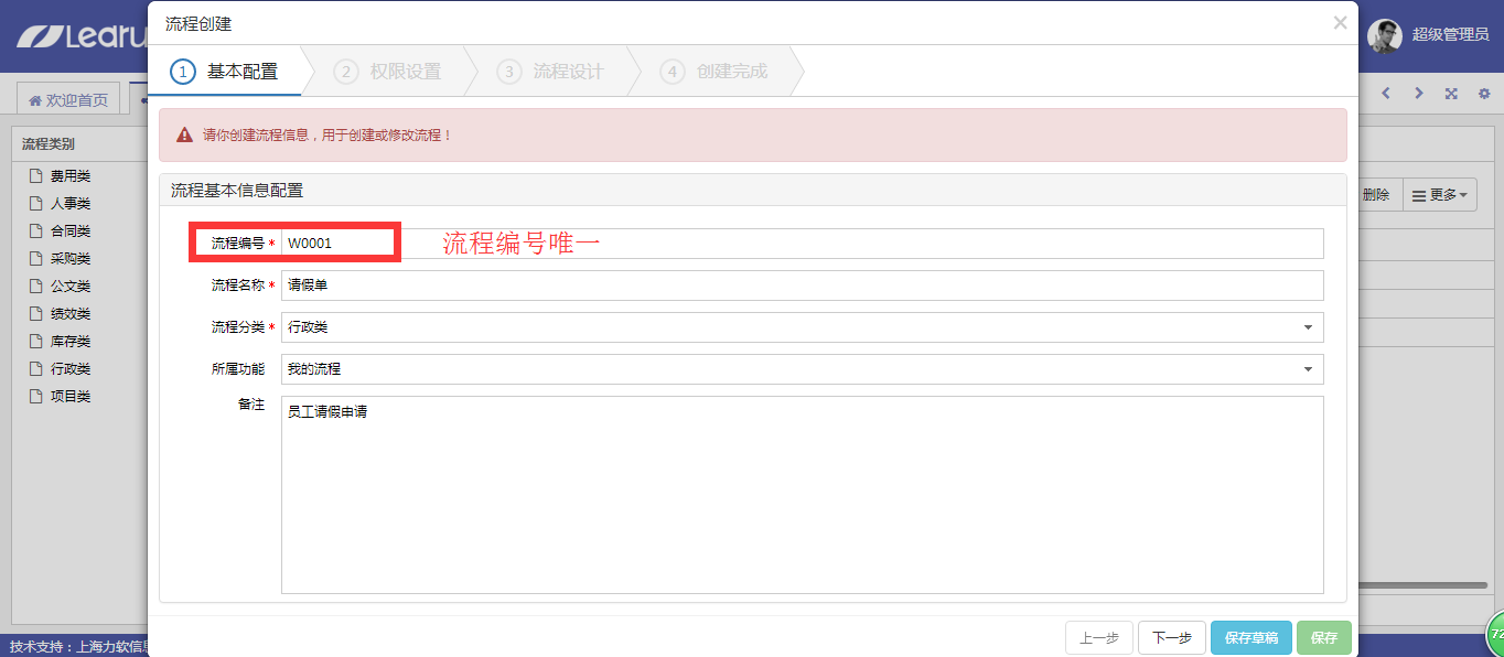 7.点击新增,进入流程设计界面,填写流程基本信息