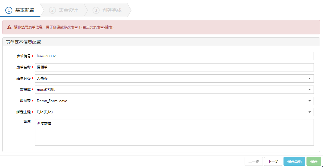 3.对表单进行基本信息的设置