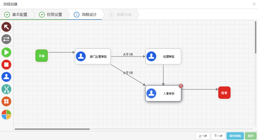 12.点击下一步,并保存。一个请假工作流就设计完成了