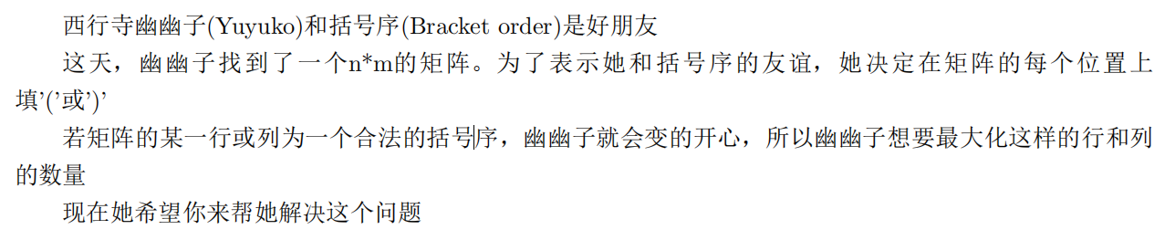 明显括号序长度是偶数,如果其中一个是奇数,那么只能让这奇数行或列是括号序