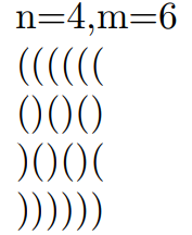 fo(i,1,n){fo(j,1,m)putchar('(');putchar('\n');}