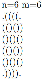 //fo(j,1,m)putchar((!(i&1) && j<=m/2) || ((i&1) && j>m/2)?')':'(');
