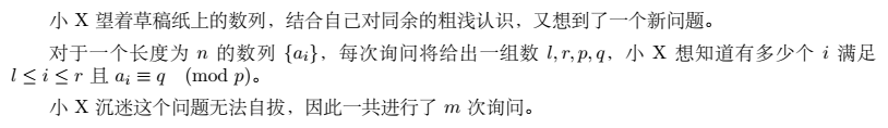 对于p<=100p<=100p<=100的询问,可以设mod[i][j]mod[i][j]mod[i][j]表示模iii余jjj的数有几个