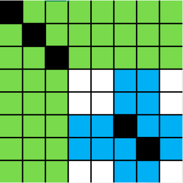绿色的部分已经放好了,对右下角的矩阵没有影响