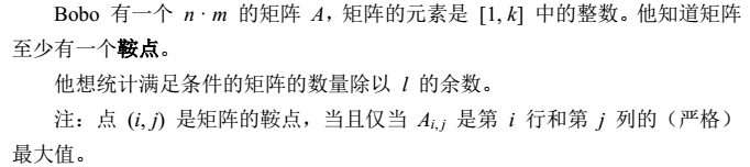 设f[i][j]f[i][j]f[i][j]表示当前至少有iii个鞍点、鞍点的值最大为jjj的矩阵数量