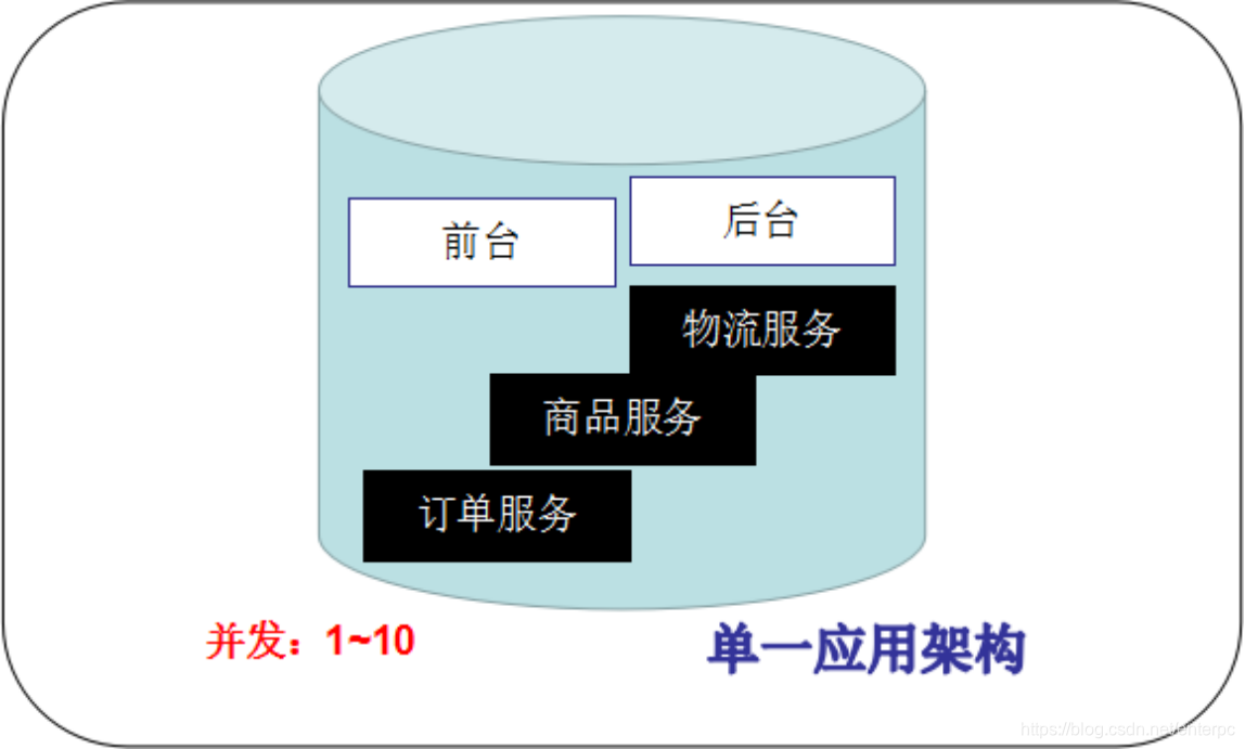 当网站流量很小时,只需要一个应用,将所有的功能部署到一起(所有业务都放在一个tomcat 里),从而减少部署节点和成本;
