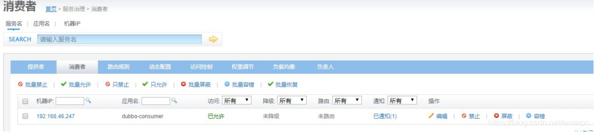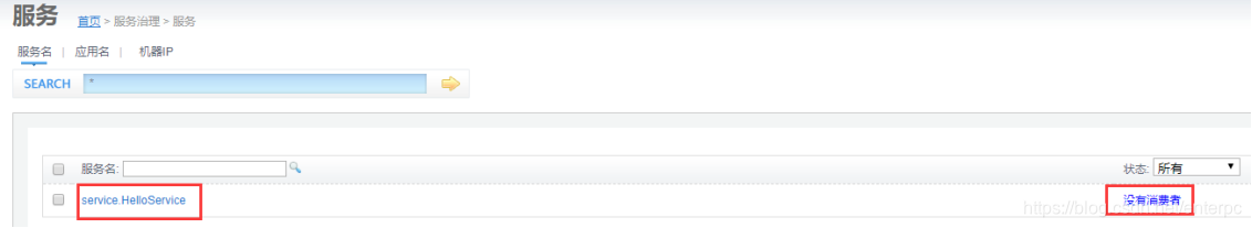 启动dubbo-server服务方后,刷新管理端,服务注册成功,只是没有消费者