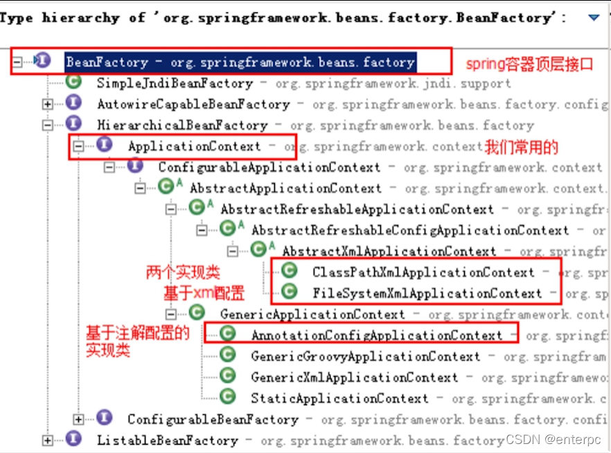 通常,我们称BeanFactory为SpringIOC的基础容器,ApplicationContext是容器的⾼级接⼝,⽐