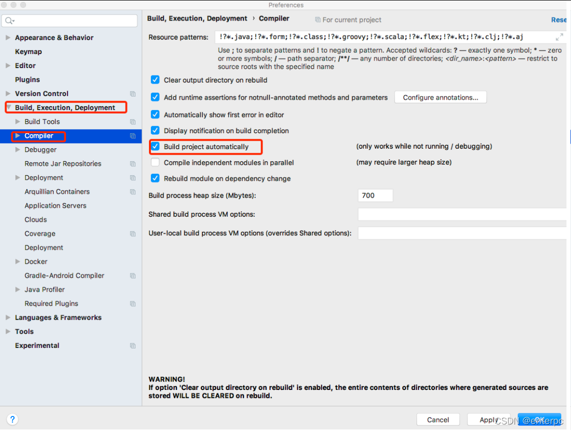 选择Build下的Compiler选项,在右侧勾选“Build project automatically”选项将项目设置为自动编