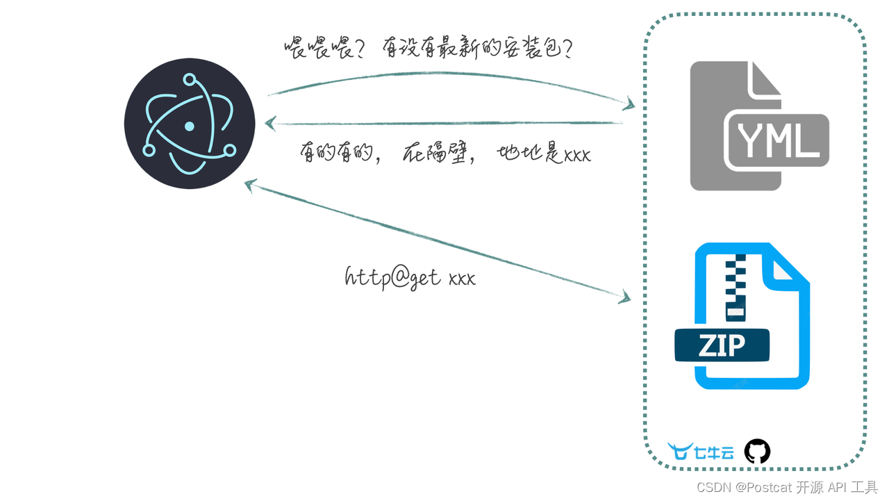 Electron的自动更新机制并不算复杂,但团队内似乎没有相关文档,正好笔者搞明白了,就简单说明一下,以MacOS的arm平台为例说明,具体代码可以参考Postcat的相关配置,本篇文章就不以具体代码举例了。