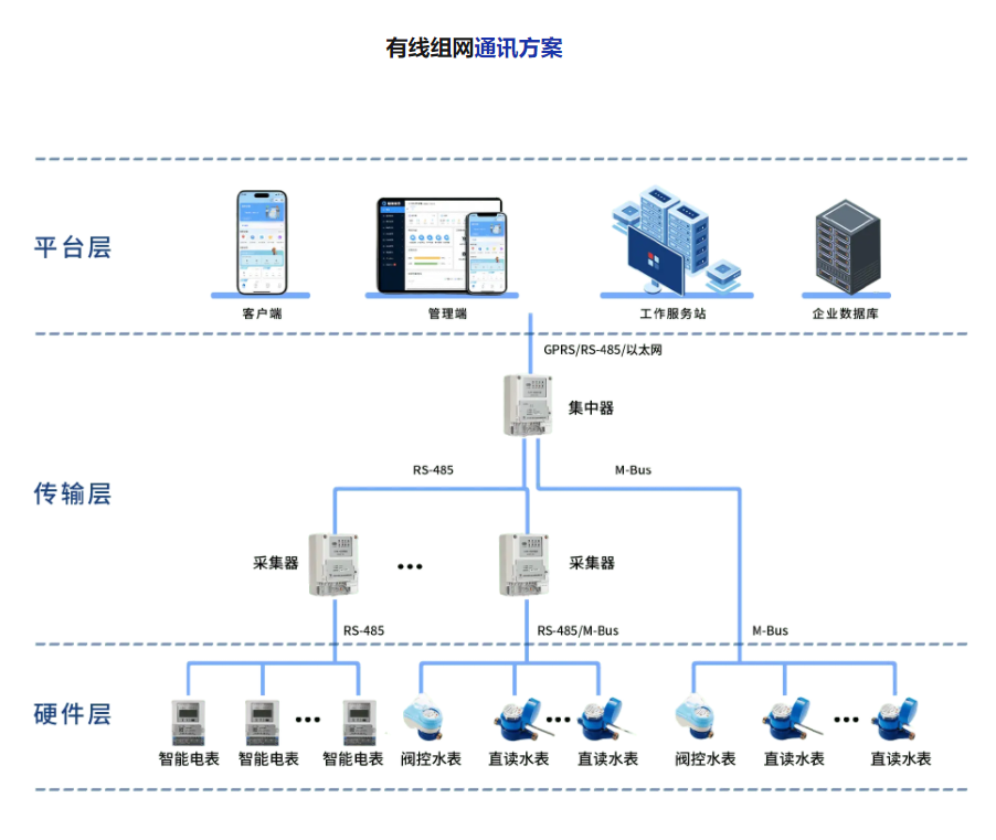 M-Bus水表成为了理想之选,在楼盘建设初期,就可以将M-Bus总线像网线一样预埋在管道井里,所有水表都挂在这根总线上 。M-Bus总线直接给水表供电,水表里无需电池,从根本上杜绝了因电池问题导致的数据中断,实现零功耗、免维护,完美匹配高端社区追求的“无感体验” 。同时,其有线连接方式使得数据传输稳定可靠,能够轻松实现阶梯水价、预付费、远程阀控等功能,大幅提升整个社区的智能化水平,为居民提供更加便捷、高效的用水管理服务 。