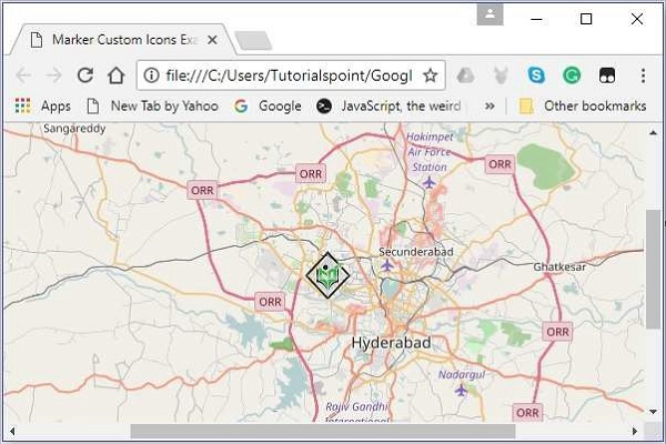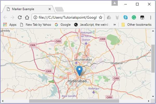 以下代码在Tutorialspoint的位置上设置标记。在这里,我们使用Tutorialspoint的徽标代替默认标记。
