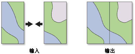 将数据类型相同的多个输入数据集合并为新的单个输出数据集。此工具可以合并点、线或面要素类或表