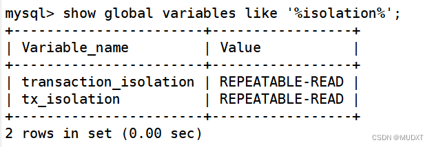 1、查询全局事务隔离级别